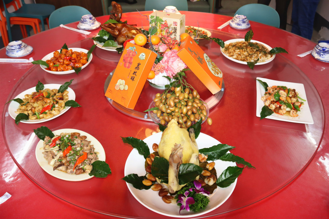 黄皮富含丰富的维生素C、糖、果胶和有机酸,有较高的营养价值和药用价值,叶、果和种子等都可入药,具有消食健胃、理气健脾、行气止痛等功效。因此,黄场村附近的农庄还积极开发黄皮佳肴,通过厨师的精心研发,为市民群众准备了一桌色香味俱全的黄皮宴。据悉,黄皮宴有黄皮叶蒸鸡、黄皮酱碌鹅、黄皮叶焖鸭、黄皮蒸猪舌、黄皮蒸排骨、黄皮咕噜肉、黄皮炒猪大肠、黄皮炒虾球、黄皮龙骨汤、黄皮酱捞河粉等八菜一汤一主食,在原有菜式的基础上,通过添加黄皮叶、黄皮鲜果、黄皮酱等,将黄皮独有的味道融入菜式中,让佳肴风味更佳。