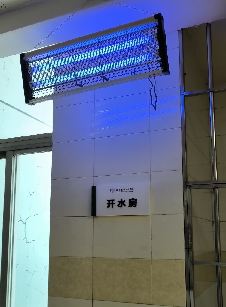 随后,记者来到住院病区了解患者的治疗情况。记者看到,病房的窗户安装有纱窗,病房门口安装有纱门;病房内,每名患者的病床上都安装有蚊帐。在病区公共区域,设有多盏紫外线消毒灯、配备多种灭蚊器具,最大程度阻断蚊子尤其是花蚊的出现,防止患者被叮咬,阻断病毒传播。