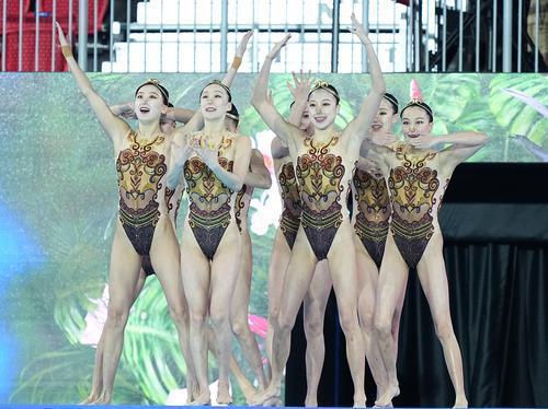 明天是本届世锦赛花样游泳比赛的收官日,还将产生两枚金牌,中国队将全力争取在集体技巧自选决赛中卫冕,她们在昨天该项目预赛中以1.5分的优势力压劲旅西班牙队名列第一,此外郭牧也/刘津含将参加混合双人自由自选的决赛。