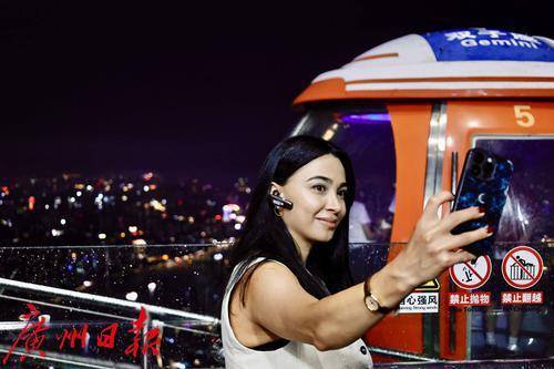 7月23日晚,“欧洲青年领袖湾区行”代表团登上广州塔感受城市夜景。