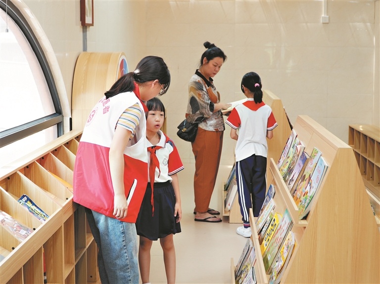 暑假期间,“图书馆热”升温。在广州荔湾区海龙街道,荔湾西关实验小学海北学校(下称“海北学校”)内的“西关书房”迎来入馆高峰。其实,不仅是在暑假,平时这里也人气颇旺。这间约100平方米的社区图书馆,除了面向海北小学的师生,还向周边2万余社区居民敞开怀抱,通过创新“一馆双门”实现学校、社区的融合使用——工作日上课时段开通师生通道,保障海北学校师生阅读、借还等需求;工作日的午间、夜间部分时段以及休息日昼间开通居民通道,向社区居民提供广州全市图书通借通还和阅览图书服务。