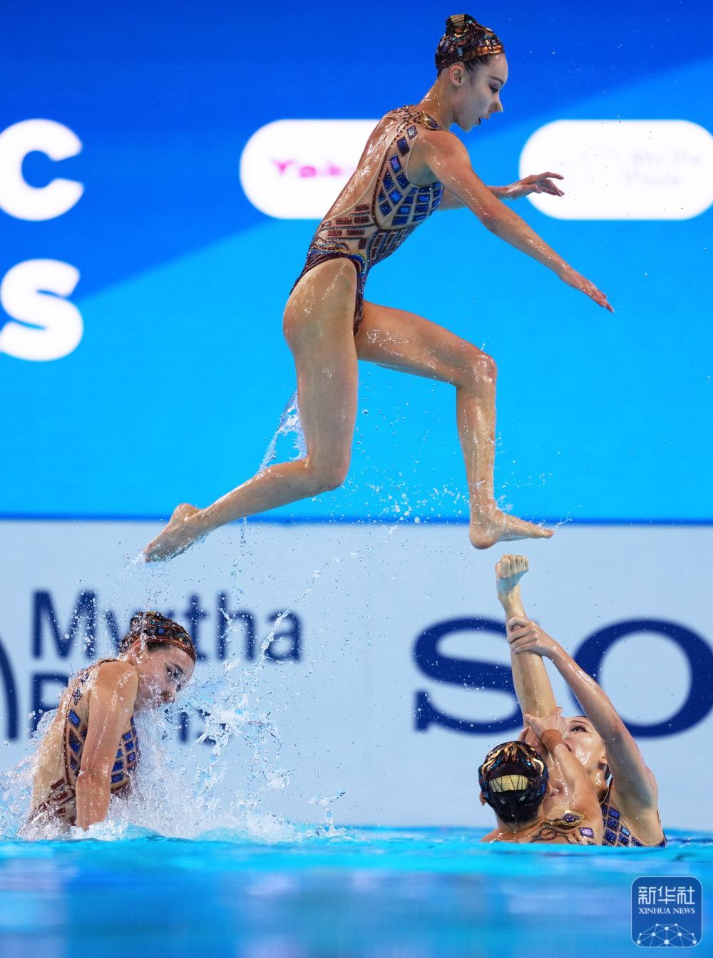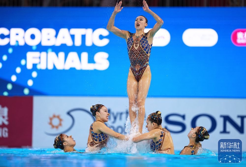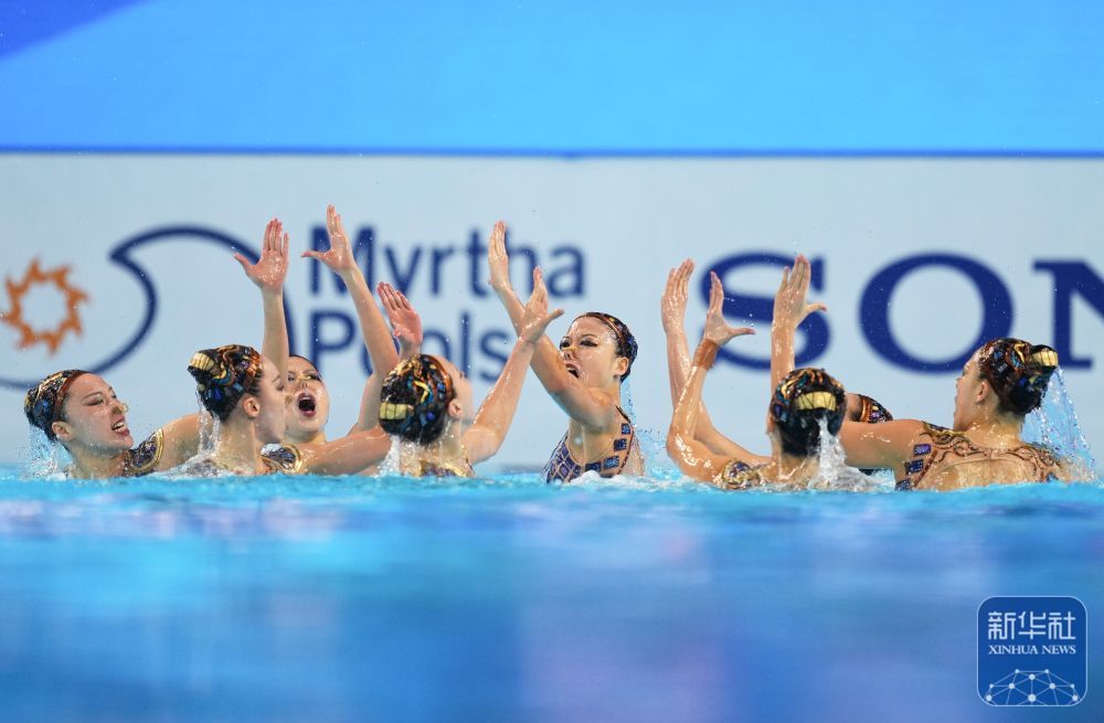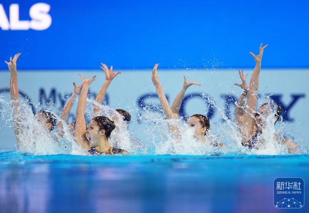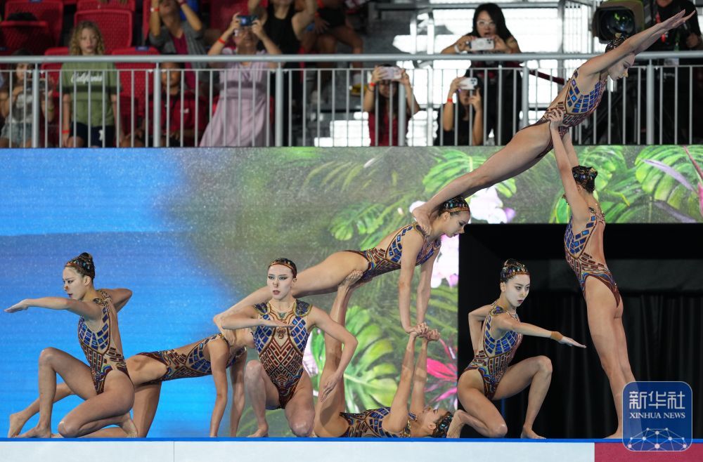 7月25日,在新加坡举行的世界游泳锦标赛花样游泳集体技巧自选决赛中,中国队获得冠军。