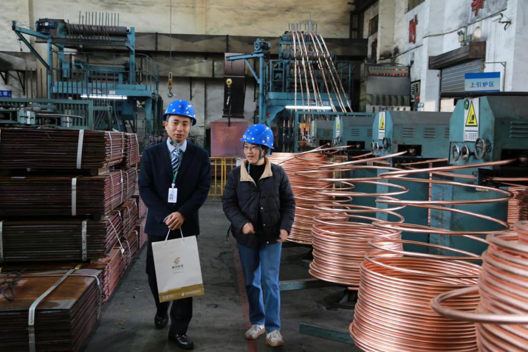 邮储银行广州市白云支行客户经理调研半径电力铜材生产车间。