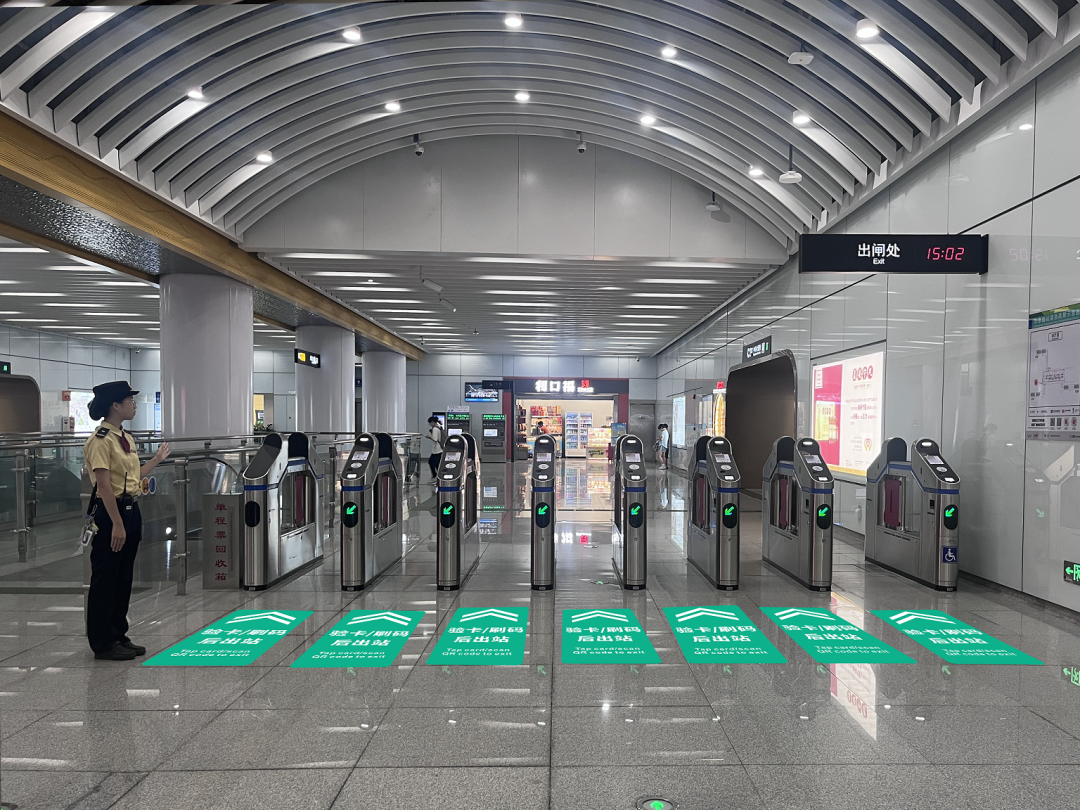 记者了解到,与日常闸机扇门常闭不同,在“闸机常开门”模式下,闸机扇门默认保持开启状态,乘客验卡/刷码后,确认闸机屏幕显示“绿色通行箭头”或闸机顶部绿色指示灯亮起时,即可直接通过闸机。如遇排队进闸时,前面的乘客正常验卡/刷码通行,扇门不会关闭,后面的乘客无需等待闸机扇门关闭再打开,即可连续验卡/刷码通过。但当“常开门”闸机接收到无效车票或无票通过时,闸机扇门将自动关闭,乘客需退出通道重新验卡/刷码,或寻求工作人员帮助。若乘客反向通行(如在出闸口进站或进闸口出站),扇门同样会自动关闭,以防止逆行。