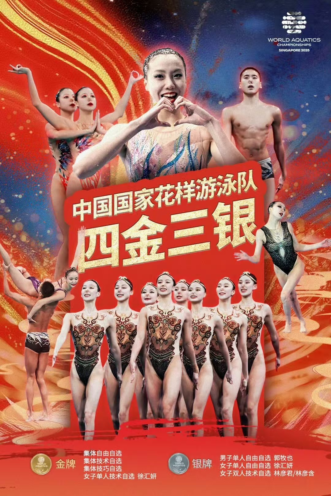 今天,2025年世界泳联游泳世锦赛花样游泳项目收官,中国队在压轴的集体技巧自选决赛中强势夺冠,这是中国代表团在本届世锦赛的第4枚金牌,最终,中国花样游泳队以4金3银结束了本届世锦赛的征程。