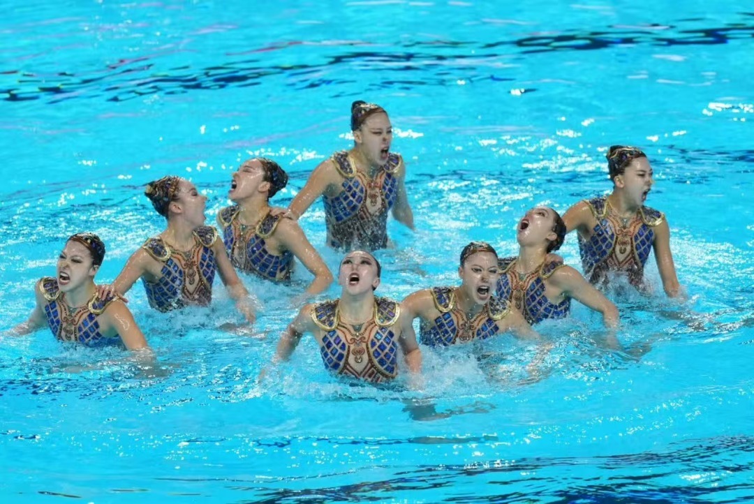 今天是本届世锦赛花样游泳比赛的收官日,率先进行的混合双人自由自选决赛中,中国队的郭牧也/刘津含获得第7名,而压轴的集体技巧自选决赛在晚间举行,中国队在该项目的预赛中以1.5分的优势排名第一,她们的节目名为《秦俑魂》,以西安的兵马俑为灵感,该节目在今年6月的花样游泳世界杯总决赛上惊艳亮相,得到了专家和裁判的一致认可,音乐和编排都得到了满分。