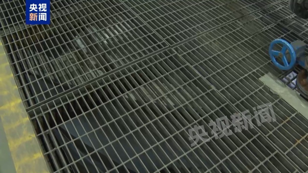 总台记者在现场看到,格栅板宽1米左右,长度应该是在1米5左右,每一个格栅板中间会有一个这样的横梁,两边都会担在两侧的横梁上。工作人员告诉记者,格栅板采用着点焊方式焊在上面,底下就是浮选机,当时一共有5块这样的格栅板发生坠落,被救下来的老师当时抓住了浮选机的边缘,最后被工作人员救下。