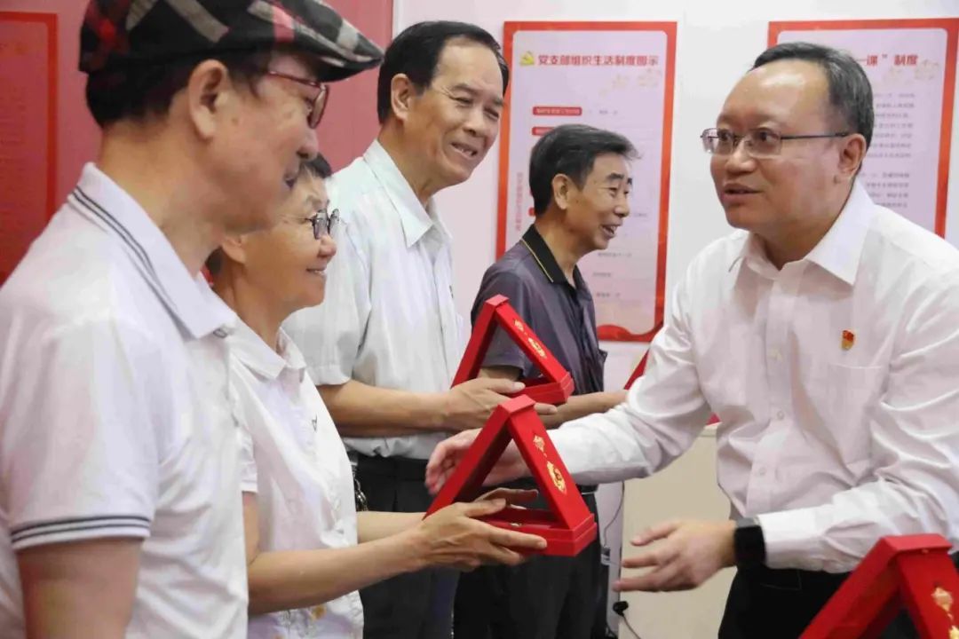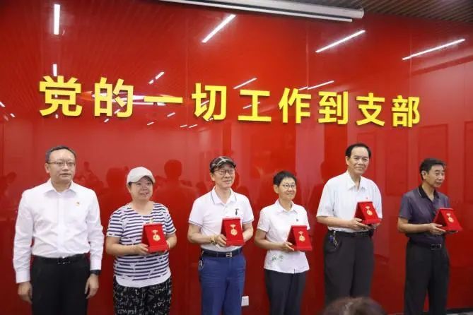 致敬荣光。活动现场向“光荣在党五十年”的老党员代表颁发纪念章。