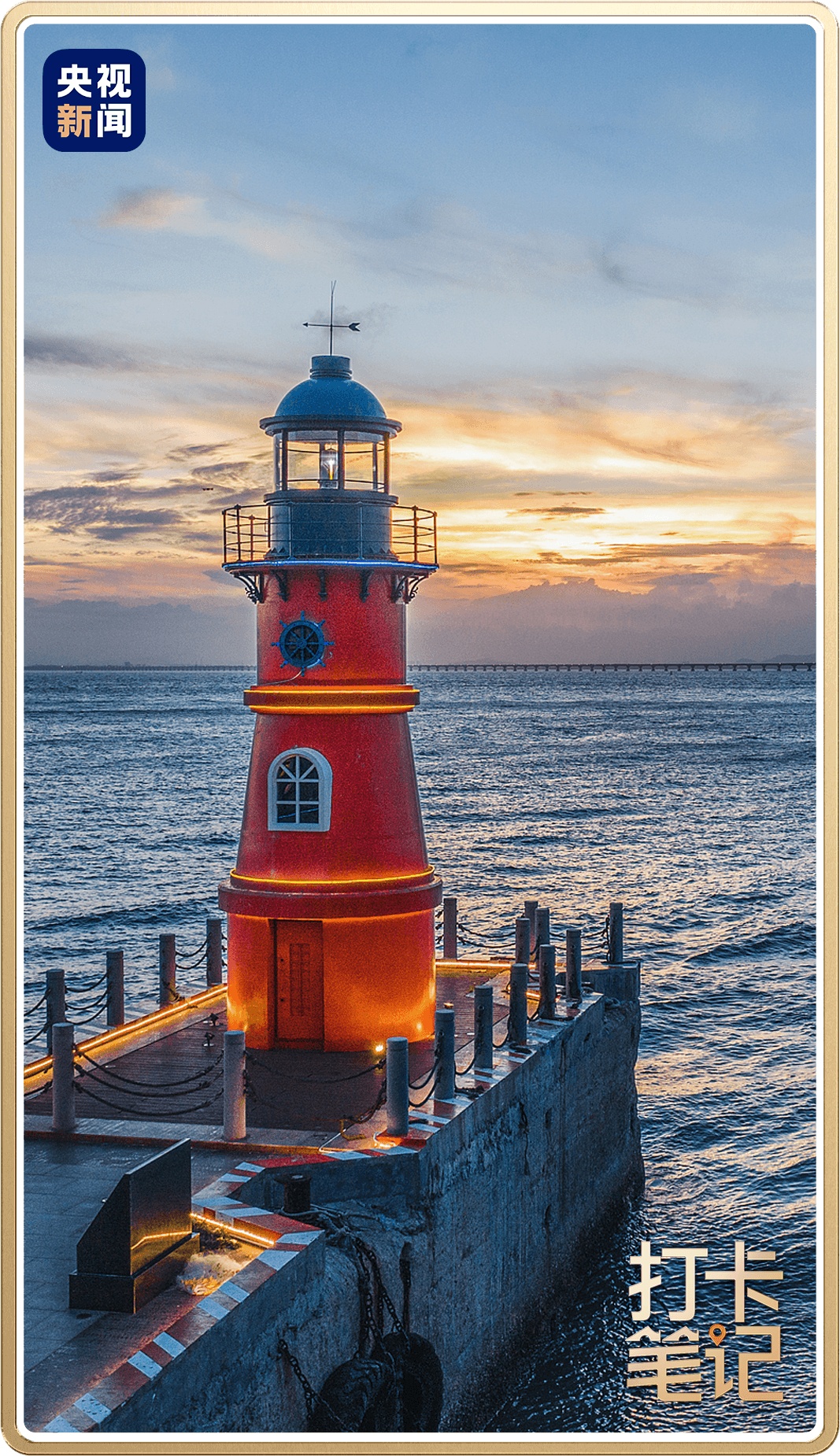 上岛的公交车穿越南澳大桥,远远地就能看到岸边的一抹鲜艳的红色——长山尾码头灯桩。
