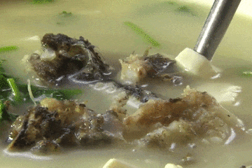 △石九公鱼豆腐汤。奶白的鲜汤搭配肥美的鱼肉,味道醇厚。