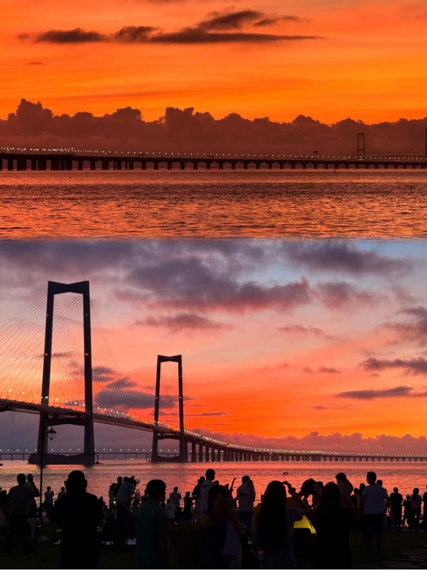 作为深中通道登陆点旁的网红海岸线,这里承包了大湾区的日出名场面:日出时分,可在此迎接梦幻的橘子海,捕捉深中通道与大海、深圳天际线同框,感受大国基建的震撼。