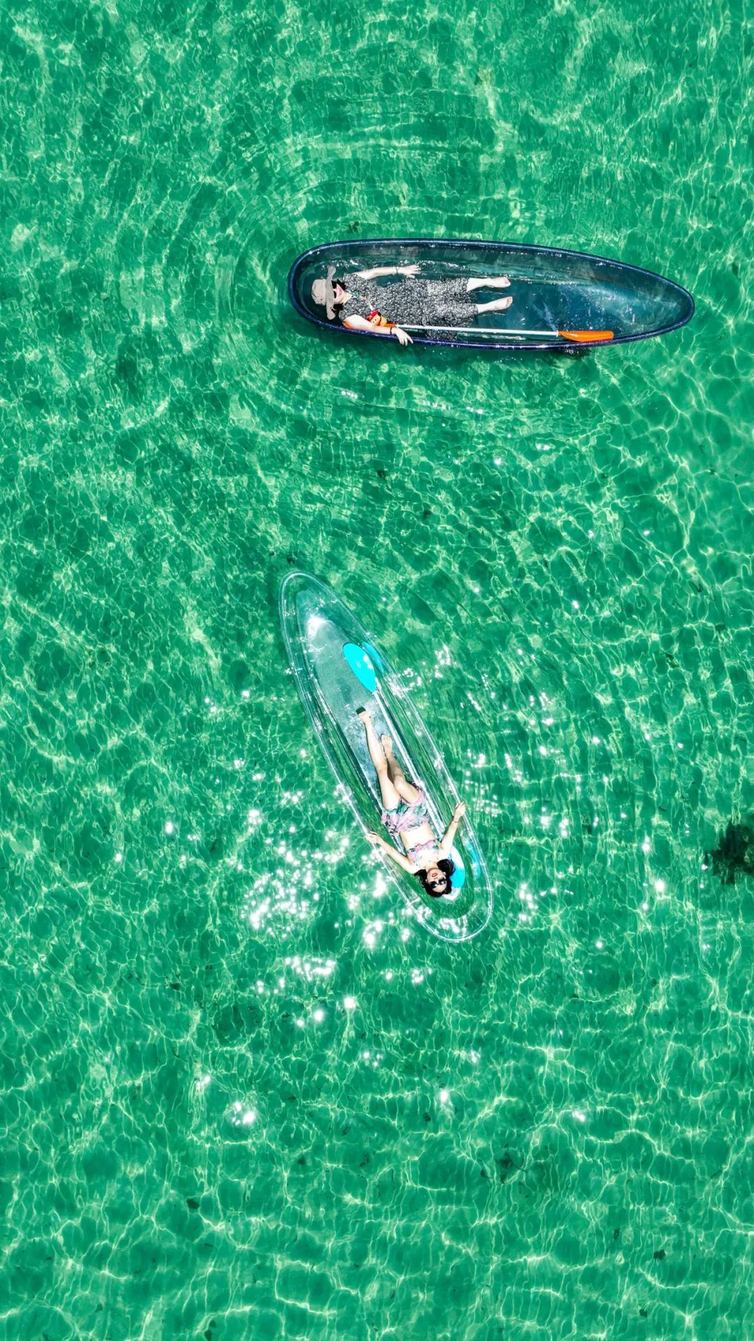 这里的海水呈现出梦幻般的“玻璃海”质感,蓝绿交织,清澈透亮。