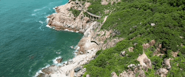 清晨,登上海边的晏镜岭悬崖栈道,童子湾的浪涛拍岸声与风过耳畔的低吟声,交织出属于南海的脉动。