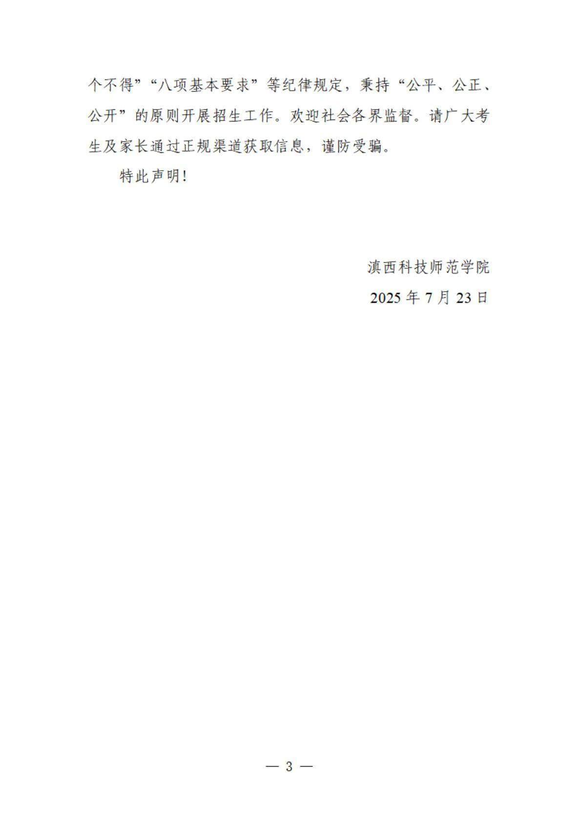 目前,云南省2025普通高校招生录取工作正在进行中。7月23日,云南农业大学、滇西科技师范学院发布声明称,近期有部分人员在抖音、小红书、贴吧等网络平台传播非官方招生答疑信息,此类行为可能误导考生及家长,存在信息泄露及诈骗风险。为此提醒考生及家长通过正规渠道获取信息,谨防受骗。