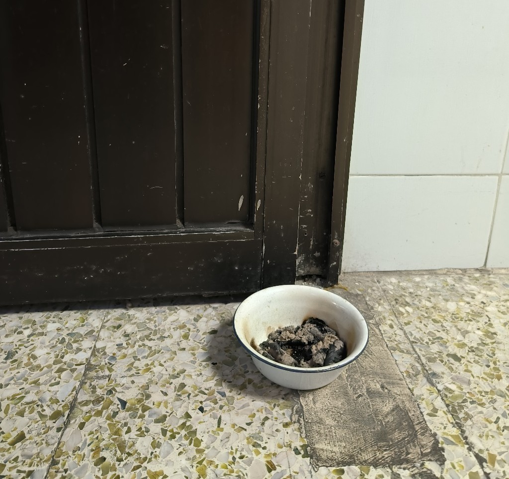 在走廊上点起的艾草条