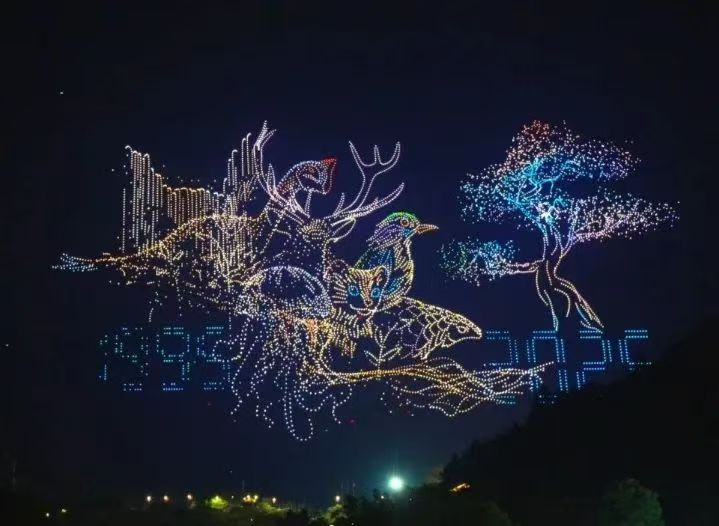 在河源,夏日的夜晚,一项新的吉尼斯世界纪录在万绿湖夜空中诞生,11198架无人机上演空中的光影盛宴,无人机与湖水、山峦相映成趣,科技感与生态美交融,令人震撼。