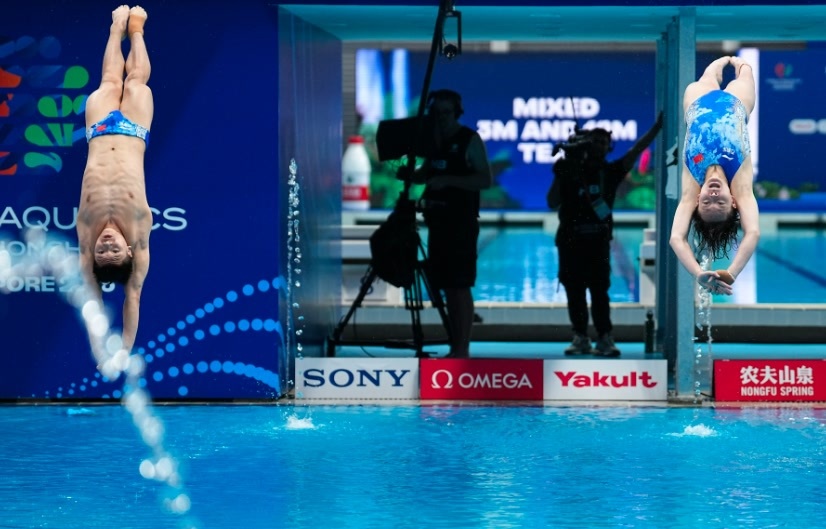 7月26日下午,2025年新加坡游泳世锦赛跳水项目首枚金牌产生。在混合团体决赛中,曹缘、陈艺文、陈芋汐、程子龙组成的中国队夺得冠军。