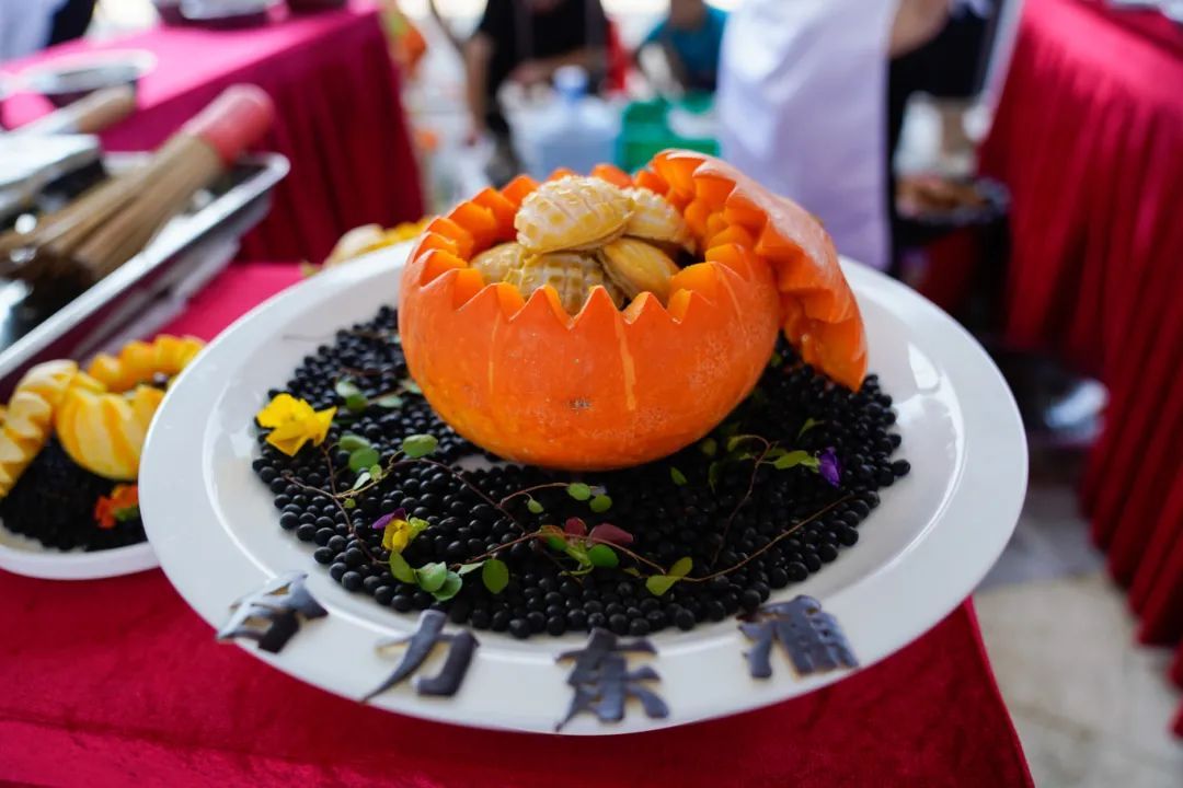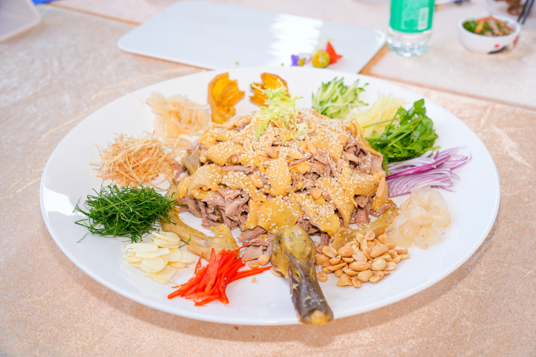 龙鲍凤鸭、广式砂锅焗青头鸭、子姜梅子青头鸭、太子妃(百花鸡酿带子)、蒜香节瓜牛小排、冰镇水果咕咾肉……比赛现场,大厨们纷纷拿出自己的“看家本领”,煎、炸、炒、蒸、焗等“十八般武艺”齐上阵;亦有大厨化身“艺术家”,精雕细琢,制作出形象精美的“艺术品”,色香味俱全的美味佳肴让人垂涎欲滴。专家裁判对菜品进行现场专业评分,分别评选出两个组别的金奖、银奖、铜奖。