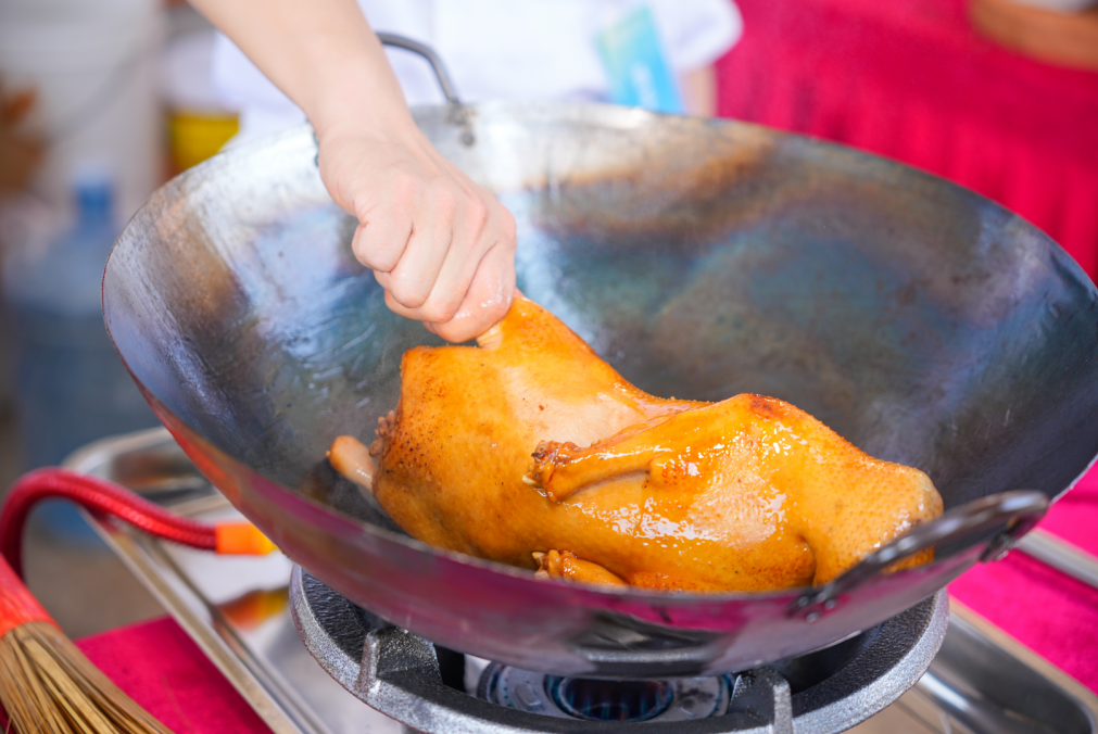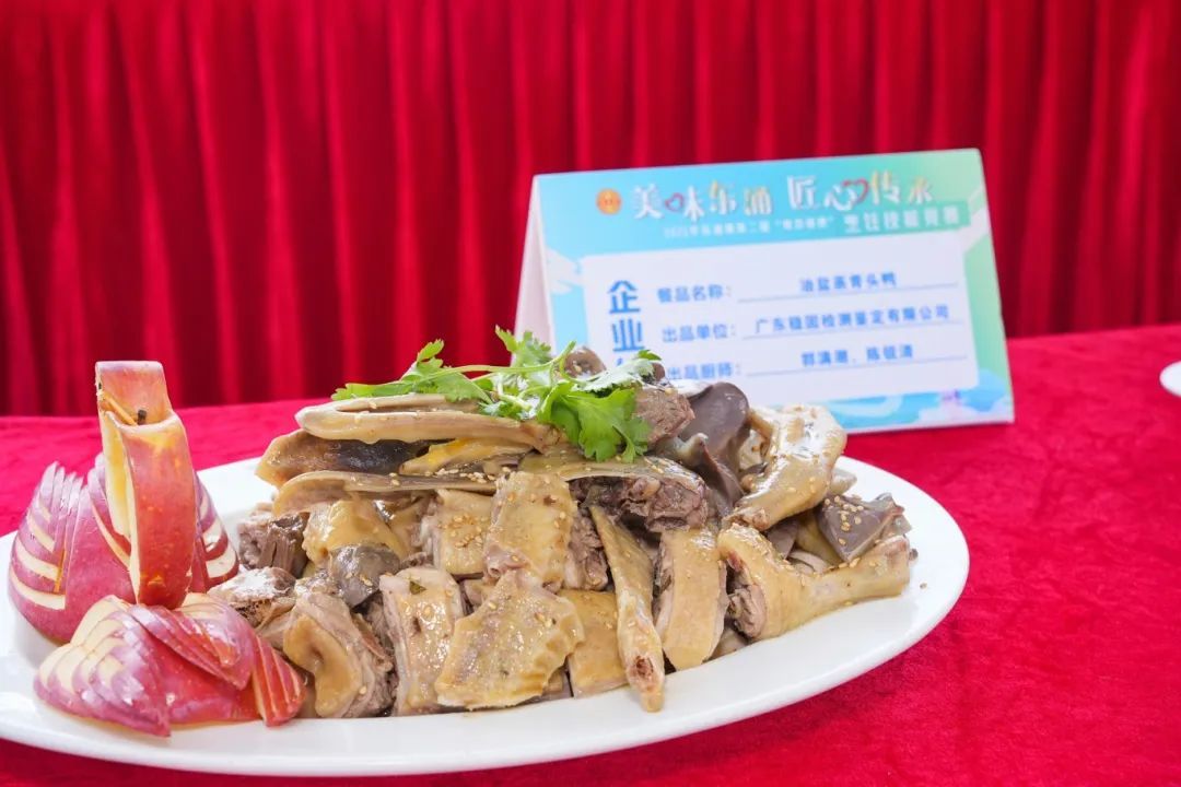 广东稳固检测鉴定有限公司的主厨郭满潮则带来了油盐蒸青头鸭、香菠咕噜肉两道菜品。“油盐蒸青头鸭的做法可以吃出鸭的鲜味,夏日天气比较热的时候,很适合做这种比较清淡的菜。”郭满潮说。
