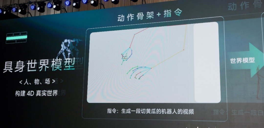 商汤具身世界模型还能构建面向人、物、场的4D真实世界。用户仅需要输入简单的提示词,比如“在厨房区域的架子上找东西”,“进入娱乐室、向右转,然后打开通往院子的门”等等,具身世界模型就能自主进行位姿、动作骨架和指令的生成。
