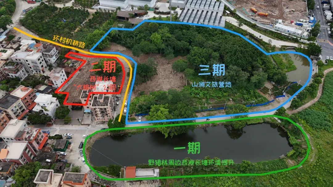 对此,庄头村制定了“三步走”的长远规划,一步步激活片区价值:第一步,开展野猪林周边西淋长塘环境综合提升工程,先让旧水塘“焕新颜”。目前完成挂网招标,预计8月初正式动工;第二步,由村出资20万元,利用3.8亩土地建设西淋长塘“大榕树”公园,方案已于7月27日正式表决通过,预计8月底开工;第三步,集思广益谋划三期开发利用,20亩地拟按流程挂网出租、引入专业团队,打造成山涧文旅营地,让荒地生出“金点子”。