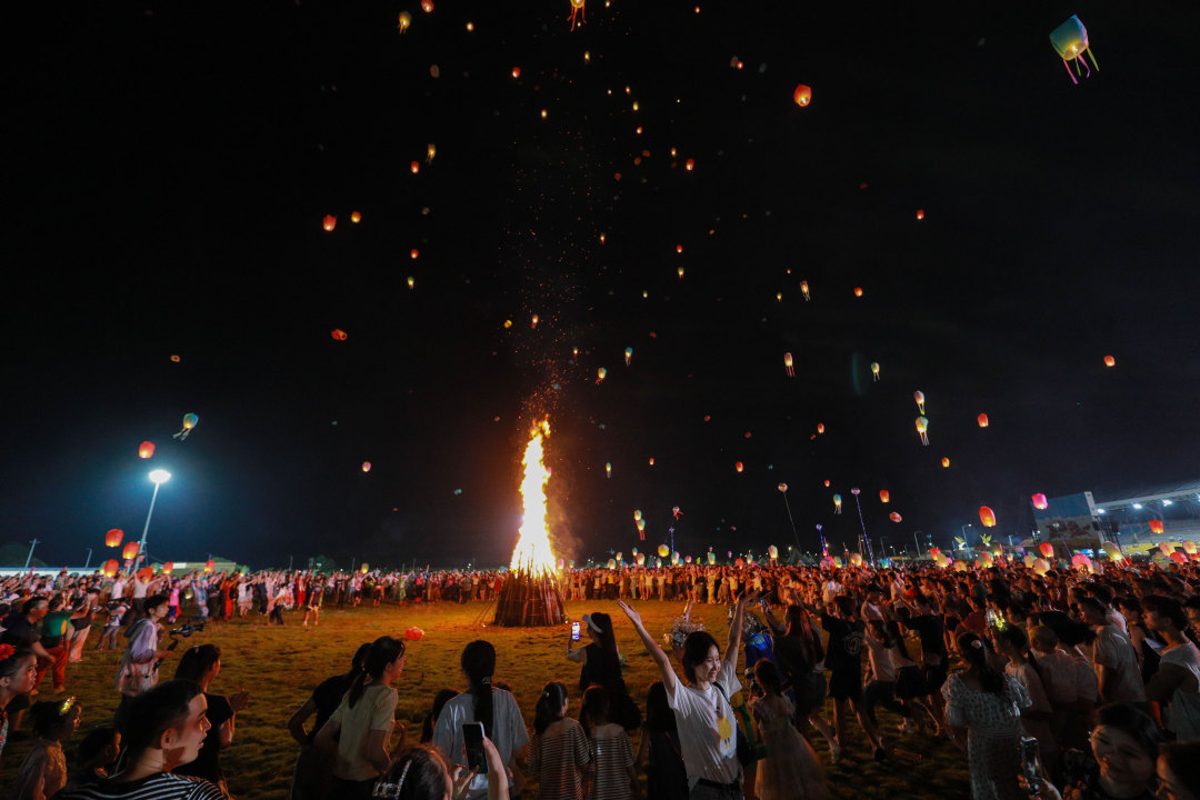 比赛接近尾声,主办方还举行了盛大的篝火晚会,各族群众手拉手围成圆圈,跳起欢快的芦笙舞。当数百盏祈福灯缓缓升空,照亮夜空的瞬间,整个赛马城化作璀璨的星河。
