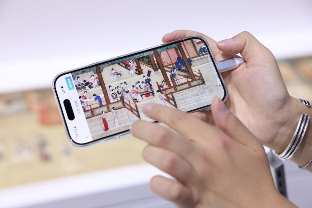 另一幅明代仇英的《汉宫春晓图》(超5米长)同样惊艳。以往平铺拍摄总缺边少角,如今观众移动手机就能完整记录,古人浇花、观鸟、闲唠嗑的生动细节分毫毕现。