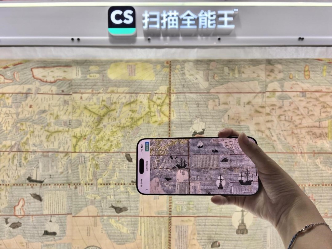 7月28日,记者在现场看到,这项技术以《坤舆万国全图》和《汉宫春晓图》为例,展现了AI如何让古画"开口说话"。《坤舆万国全图》是南京博物院镇院之宝,长3.85米的复制件上,400多年前的世界地图藏着天文地理与风土人情的密码。观众只需上下左右滑动拍摄视频,AI便能"读懂"图像特征,自动筛选优质局部、优化质量,最终拼接成一张高清大图。更妙的是,AI还能智能识别图中山河疆域、神奇动物等元素——点击指定区域,400年前古人对世界的认知便跃然眼前。