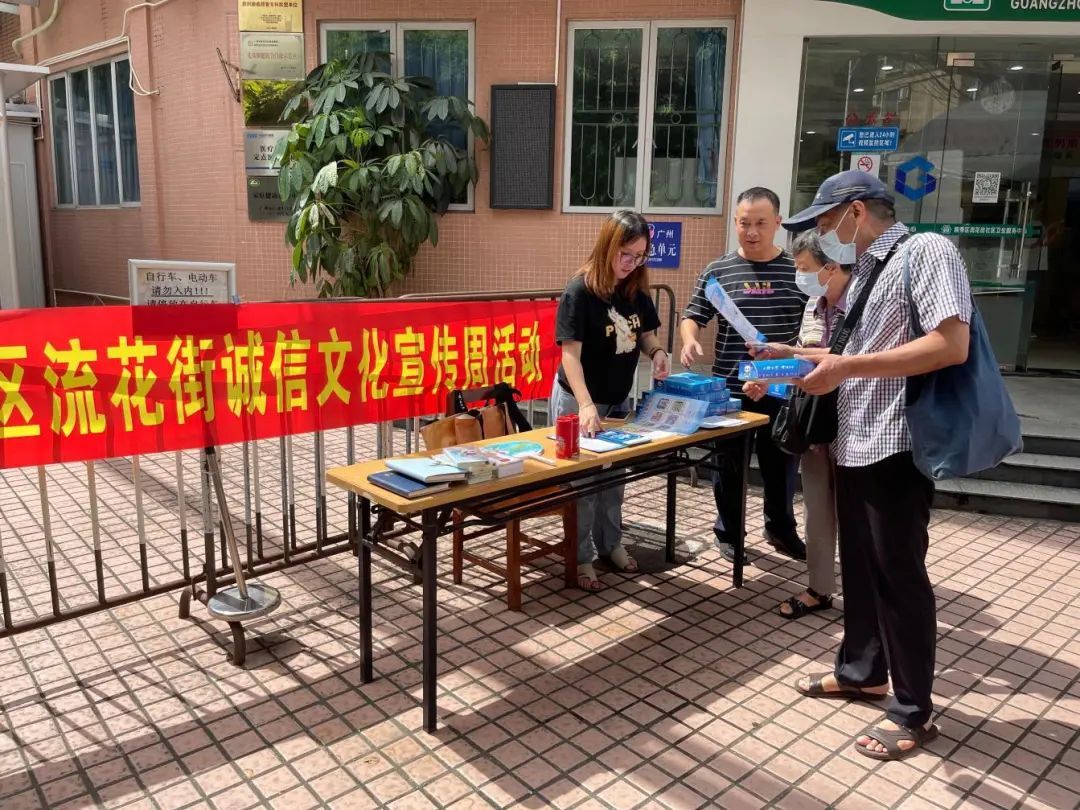 为深入贯彻落实诚信建设要求,积极响应越秀区2025年诚信文化宣传周活动号召,流花街紧紧围绕“拼经济、保安全,办全运、提品质”工作主线,以“湾区共筑诚信梦・青年创业启新章”为主题,组织开展了系列诚信文化宣传活动,把诚信文化送进专业市场、送到居民家门口,以此进一步弘扬诚信文化,推动诚信文化从“纸上理念”转化为“行动自觉”。