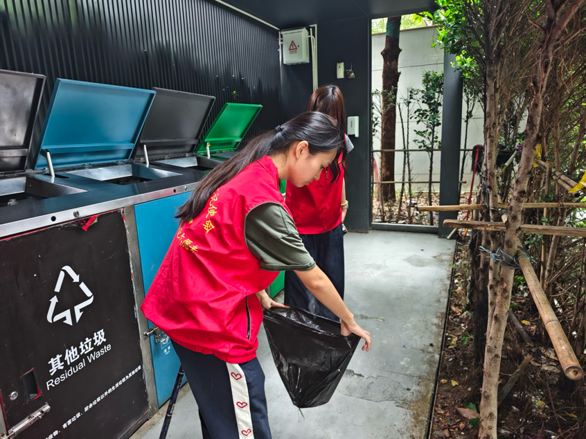 行动中,大家携带扫帚、夹子、消毒喷壶等工具,对社区内7处垃圾分类投放点逐一清理。志愿者分工合作,有的弯腰捡拾投放点周边散落的纸屑、塑料袋等垃圾,有的用清水冲洗地面污渍,有的对垃圾桶内外进行彻底擦拭和消毒,还有的将错位、混放的垃圾桶归位摆放,确保分类标识清晰可见。