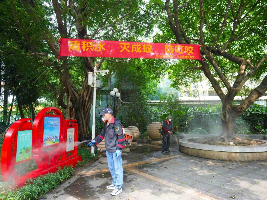 东山街水域众多,辖内东山湖、新河浦涌等大小水体构成了独特的生态环境,街道组织爱国卫生运动、建立蚊媒密度动态监测机制,筑牢日常防护根基;动员110余人,发动多方力量做好入户宣传、清理蚊媒孳生地、派发灭蚊片、开展成蚊消杀等工作