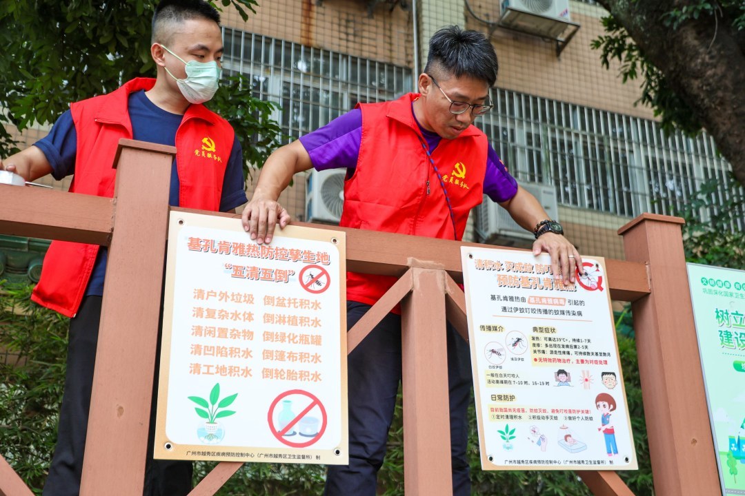 近日,越秀区委组织部依托“百个机关党组织进社区”“千名机关干部进网格”、在职党员回社区报到、民生微实事、双微双愿等,倡议各级党组织和广大党员积极参与防控工作。各街道党工委、社区党组织广泛动员结对党组织、居住地党员等各方力量,全天支持日间路面清扫、杂物清运、沟渠疏通、积水清理等工作及夜间入户宣传、协助清理等工作。通过组建攻坚队开展针对性拉网式检查,尤其是无物业小区、老旧楼宇、商务楼盘、体育场馆等场所开展防疫工作,确保水道、绿化带、积水容器、垃圾中转站等蚊虫易孳生的重点区域不留死角。