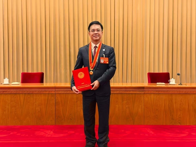 (金域医学董事长兼首席执行官梁耀铭荣膺“全国非公有制经济人士优秀中国特色社会主义事业建设者”称号。)