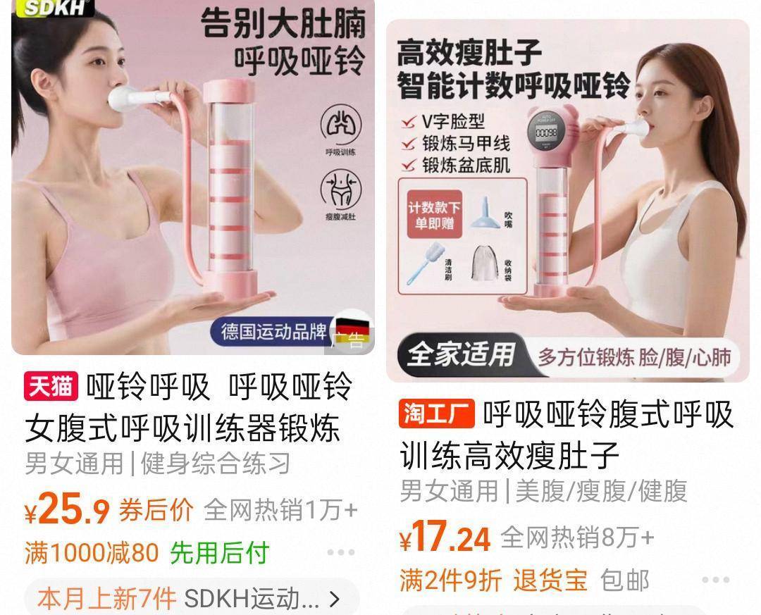 近日,一款名为“呼吸哑铃”的减肥器械,正以“每天10分钟,躺着瘦肚子”的口号席卷社交平台,仿佛让“懒人减肥族”看到了不动腿、不流汗也能轻松减肥的捷径。一时间,各大电商平台上,“呼吸哑铃”纷纷成了许多商家减肥产品中的“销冠”。