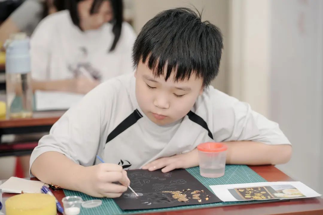 揭育苗表示,本次活动的初衷是让孩子们在暑假期间接触传统文化:“现在孩子们接触非遗艺术的机会太少了,我们希望通过这样的活动,让他们了解金箔画的历史和制作工艺。”活动中,她惊喜地发现,孩子们展现出了超乎想象的团队精神,有的孩子完成作品后会主动帮助其他小伙伴,这种自发的合作精神让她很感动。她说:“很多孩子是第一次独立完成手工作品,但大家都做得很好。这种在集体中共同创作的经历,对培养团队意识和社交能力很有帮助。”