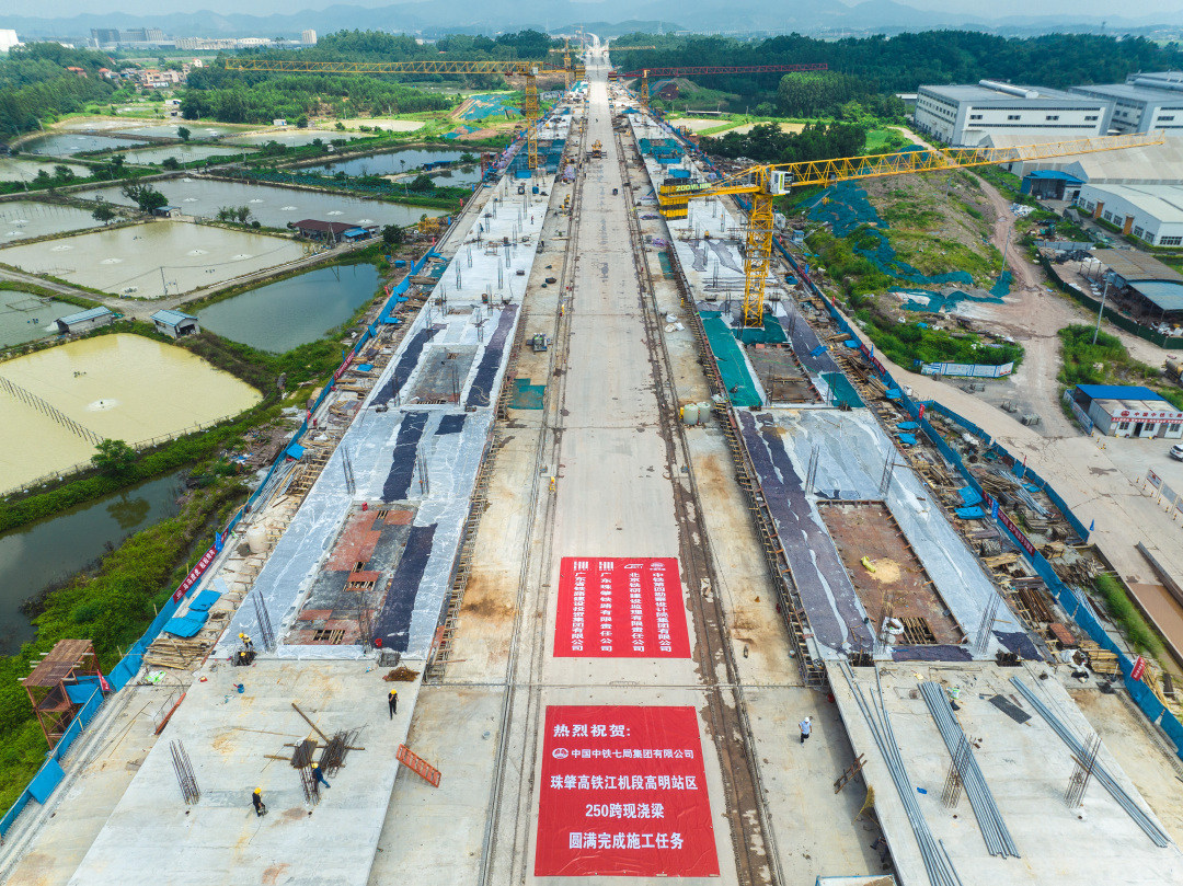 7月29日,随着最后一方混凝土顺利入模,由省铁投集团所属珠肇铁路公司投资建设,中铁七局集团承建的珠肇高铁江机段6标高明站现浇梁群顺利浇筑完成,标志着珠肇高铁高明站站前桥梁主体工程全部完成,项目建设取得重要进展。