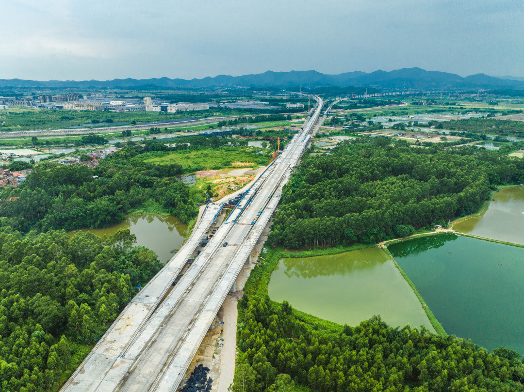 作为珠肇高铁的重要节点车站的高明站,为衔接珠三角枢纽机场的核心节点。该站采用双站台6条车道设计,首期站房建筑面积达1.69万平方米,属于中型高铁站规模。根据规划,车站将接入珠肇高铁、深南高铁等多条线路,并引入佛山地铁2号线等城市轨道,成为佛山西部唯一具备高铁、城际、地铁三网融合的枢纽,构建起覆盖粤港澳大湾区主要城市的交通圈。