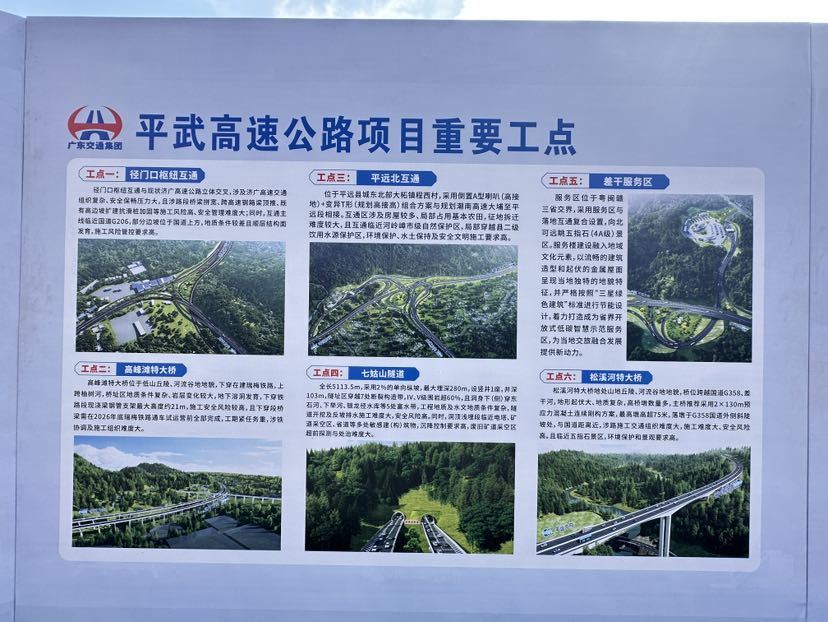 平武高速公路管理处副主任王承罡介绍,项目地处粤东丘陵山区,地形地质复杂,地灾风险大。沿线还经过平远县城、坝头镇等4处水源保护区,河岭嶂、五指石等3处省、市级自然保护区和森林公园,以及县城规划区、旅游景区、村庄等多处环境敏感点,施工环保和景观设计要求高。