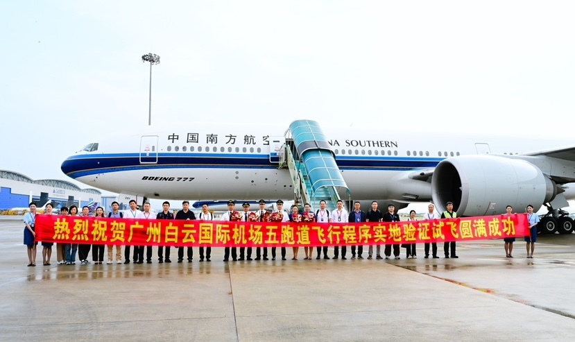 7月30日,一架中国南方航空波音777-300ER客机平稳降落在广州白云国际机场第五跑道上,标志着广州白云国际机场五跑道飞行程序实地验证试飞工作取得成功,为该跑道的正式投运奠定基础。