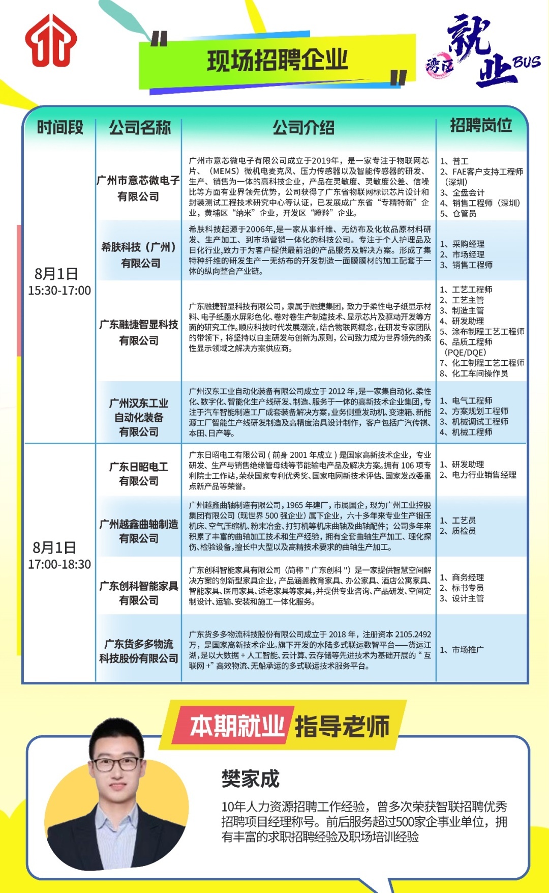 本次参与“湾区就业巴士”的企业涵盖了电子信息、化妆品、自动化装备、智能家具、物流等领域,招收岗位爆款普工、客户支持工程师、工艺工程师、电气工程师、市场推广等。