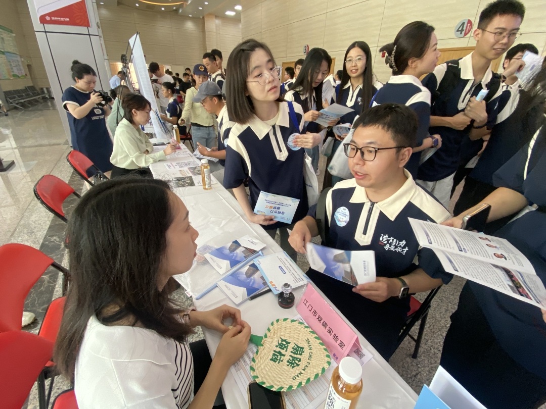 29日,江门12家优质企业与学子们进行对接,在人才对接环节上,不少企业收到了学子的简历,广东省优巨先进新材料股份有限公司处于飞速发展期,对高精尖人才需求大。“公司总部在江门有研发中心,北京也新建设了研究院,两地正同步招聘研发技术人才,薪资待遇对标一线城市。”广东优巨先进新材料股份有限公司人力资源经理甘韵怡的热情介绍吸引了不少学子驻足咨询。来自吉林大学的庞洋在了解公司情况和岗位需求后,现场投递了简历。