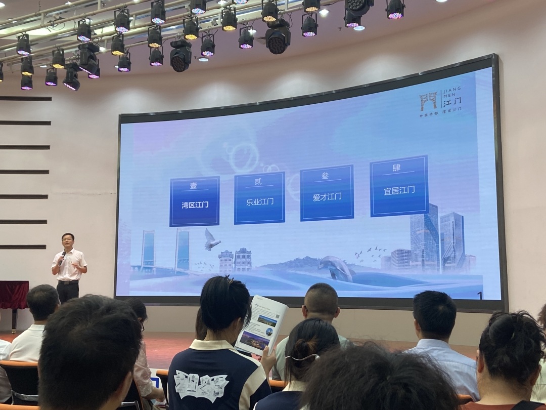 江门市人社局党组成员、副局长黄锐楼从“湾区江门、乐业江门、爱才江门、宜居江门”几个方面,推介了江门的地理优势、投资环境以及人才就业政策等,他介绍,江门正在加速构建现代产业体系,对高技能人才的需求比以往任何时候都更加迫切。黄锐楼介绍,今年以来,江门依托“百万英才汇南粤”2025年N城联动春季招聘活动,双线并轨开展“十城百校”人才招聘专项行动,吸引更多优秀高校毕业生及广大有志青年选择江门、建设江门。