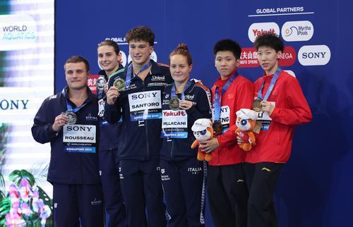 跳水比赛,中国队今天表现一般,在混合双人3米板的决赛中,李亚杰/程子龙摘得铜牌。中国队组合在前3轮均领先,但第4跳出现明显失误排名跌至第二位,最后一跳他们也没有拿出完美表现,最终名列第3,落后冠军2.43分。至此,本届世锦赛已经产生9枚跳水金牌,中国队收获7项冠军,丢掉了女子1米板和混合双人3米板两枚金牌。本届世锦赛还有4天的赛程,每天都将产生一枚单人跳水金牌,明天率先进行的是女子10米台的决赛,目前,奥运冠军陈芋汐和广州新科世界冠军谢佩铃以该项目预赛前两名的成绩挺进半决赛。