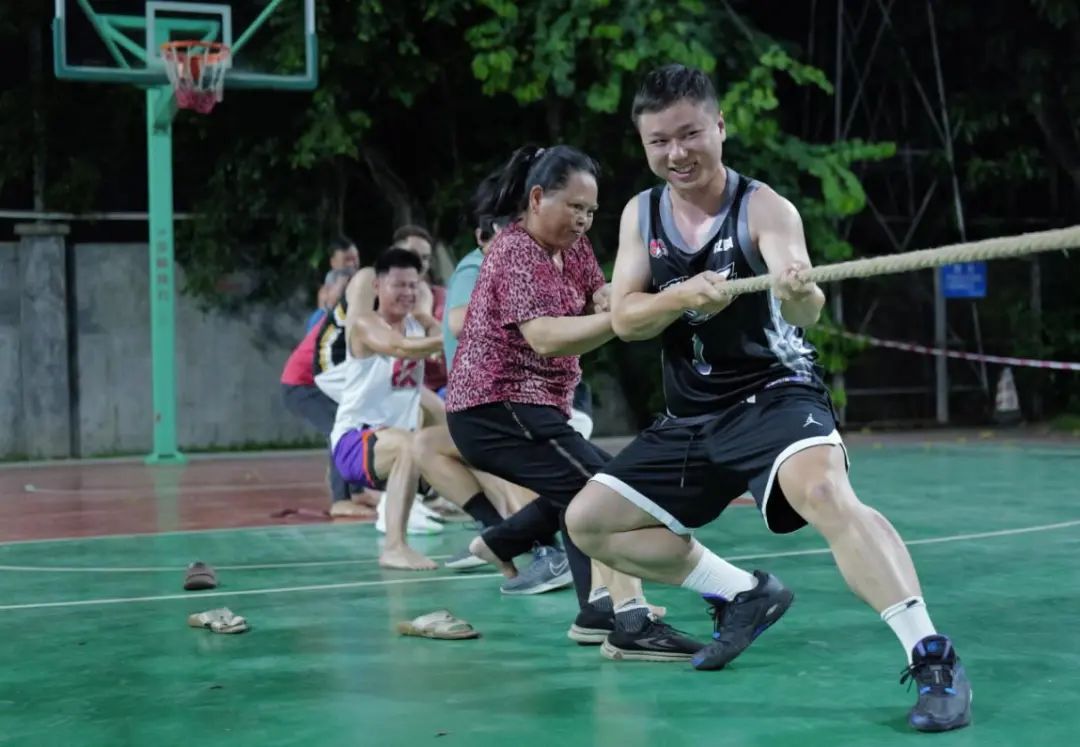 拔河比赛将运动会推向高潮。作为许多村民日常耕作练就的“基本功”,田间地头的力量在赛场上激情碰撞。比赛时,村民们全家上阵、邻里组队,紧握麻绳,脚蹬大地,在“一、二!拉!”整齐的号子声中迸发力量。这不仅是力量的对抗,更是默契与意志的考验。场边助威声不断,生动诠释了草河村民勤劳坚韧、同心协力的精神内核。此次比赛也是新时代文明实践倡导集体荣誉、互助协作理念的绝佳体现。
