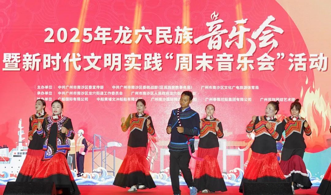 为了和少数民族同胞共庆“火把节”,7月30日晚,由南沙区委宣传部、南沙区委统战部(南沙区民族宗教事务局)、南沙区文化广电旅游体育局主办,龙穴街道党工委、龙穴街道办事处承办,广船国际有限公司、中船黄埔文冲船舶有限公司、广州南沙国际物流有限公司、广州春隆控股集团有限公司、广州民族团结艺术团协办的龙穴岛滨海旅游狂欢系列活动——2025年龙穴民族音乐会暨新时代文明实践“周末音乐会”精彩上演。
