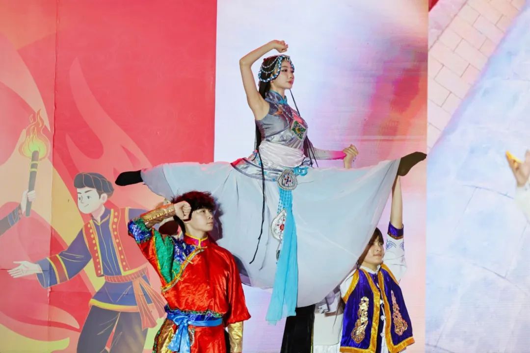 来自广船国际有限公司的少数民族同胞身着绚丽民族服装,以优美的舞姿展现了多元文化的交融共生。悠扬的少数民族民歌与小候鸟合唱团清澈的童声交织共鸣,唱响民族团结的动人乐章。