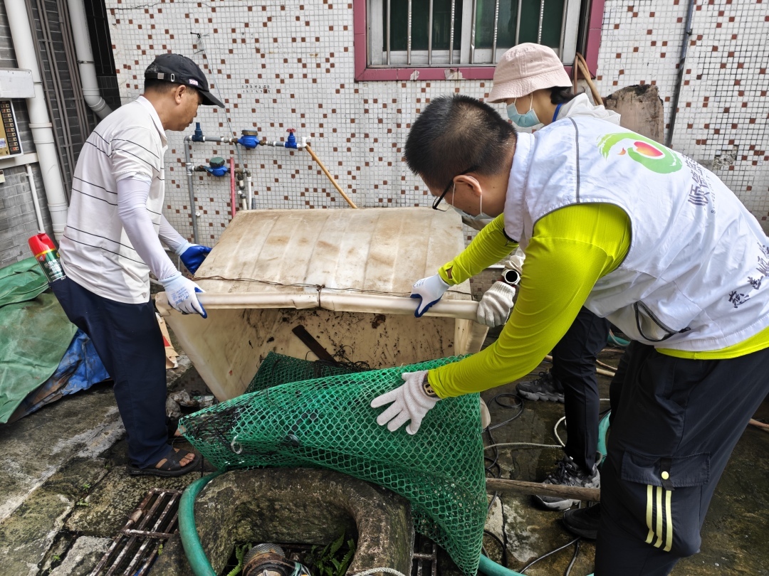 募捐只是起点,防控的关键在基层。顺德慈善会党支部党员、慈善组织从业人员与志愿者组成“专项支援小组”,在区民政人社局“三级责任体系”引领下,下沉村居开展“清源+守护+赋能”行动。支援小组的身影穿梭于老旧街巷:有人肩扛消杀设备喷洒孳生地,有人俯身清理积水容器,有人入户讲解防蚊灭蚊办法——汗水浸透的红马甲,成了最醒目的标识。