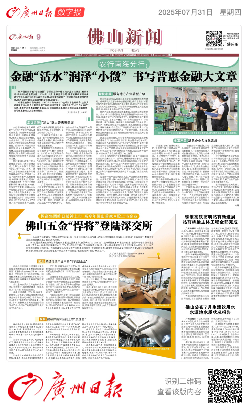 传统产业是佛山制造业的基本盘,也是佛山的宝贵财富。当前,佛山正通过抓好大规模设备更新和新一轮工业技改,推动传统产业“老树发新芽”。南海铝型材年产量超300万吨,占广东省总产量的70%,南海大沥更享有“中国铝材第一镇”的美誉。南海雄业铝型材有限公司是大沥一家生产、销售各类铝型材及其配件、模具的科创型小微企业。着眼于未来,企业创立了“荣润铝业”子品牌,设计打造橱柜等无污染的全铝家居产品,广受客户青睐。但推出品牌已占用大量资金,要扩大后续的生产经营,资金成为了制约发展的难题。