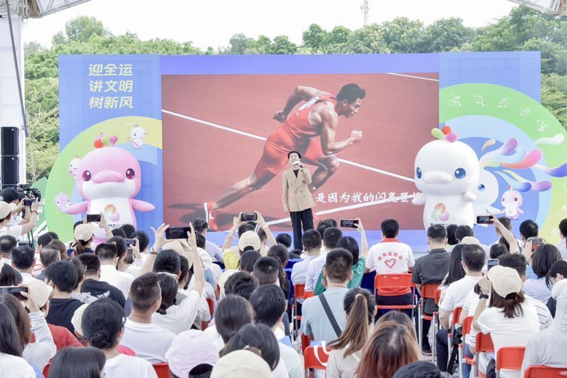 7月31日,“激情全运会 活力大湾区 文明伴我行”十五运会倒计时100天主题活动暨广州大学城新时代文明实践主题公园启用仪式在广州大学城中心湖公园举办。本次活动以新颖的形式和多元的内容,将全运精神与文明实践深度融合,吸引数百名市民群众参与。