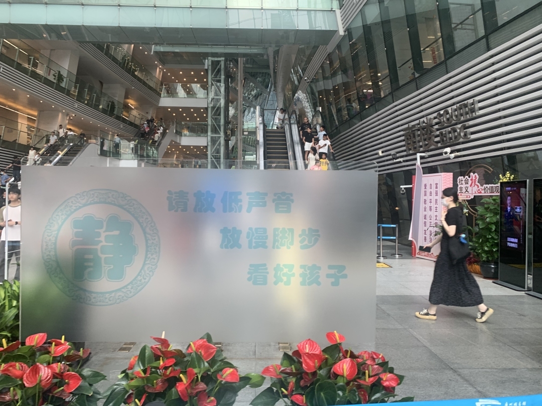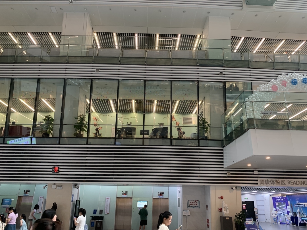在图书馆一楼,还有各种现场活动发出的声响,有研学队伍在馆内集合和参观,队伍里并不安静,孩子们互相嬉闹,老师大声指挥,整个队伍传出非常吵闹的声音。大厅里还有举办的活动,现场嘉宾发言要用喇叭扩音,传出较大声响。